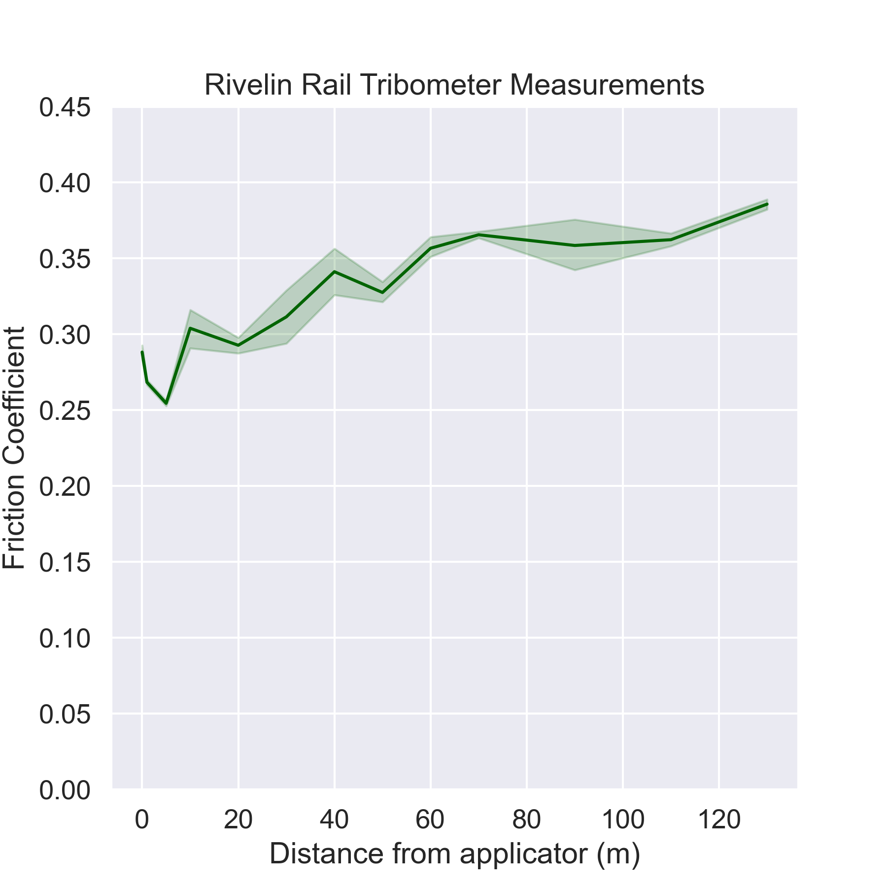 There was a measured increase in friction with increasing distance from application